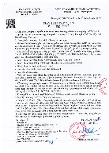 Happy One Sora – dự án căn hộ cao cấp tại phường Linh Xuân, TP. Thủ Đức, được phát triển bởi Vạn Xuân Group, đã hoàn thiện đầy đủ các thủ tục pháp lý quan trọng, đảm bảo tính minh bạch và an toàn cho khách hàng. Với tên pháp lý là Chung cư cao tầng Vạn Xuân Thủ Đức, dự án đã được cơ quan chức năng cấp phép xây dựng và phê duyệt quy hoạch chi tiết, tạo nền tảng vững chắc cho quá trình triển khai.
