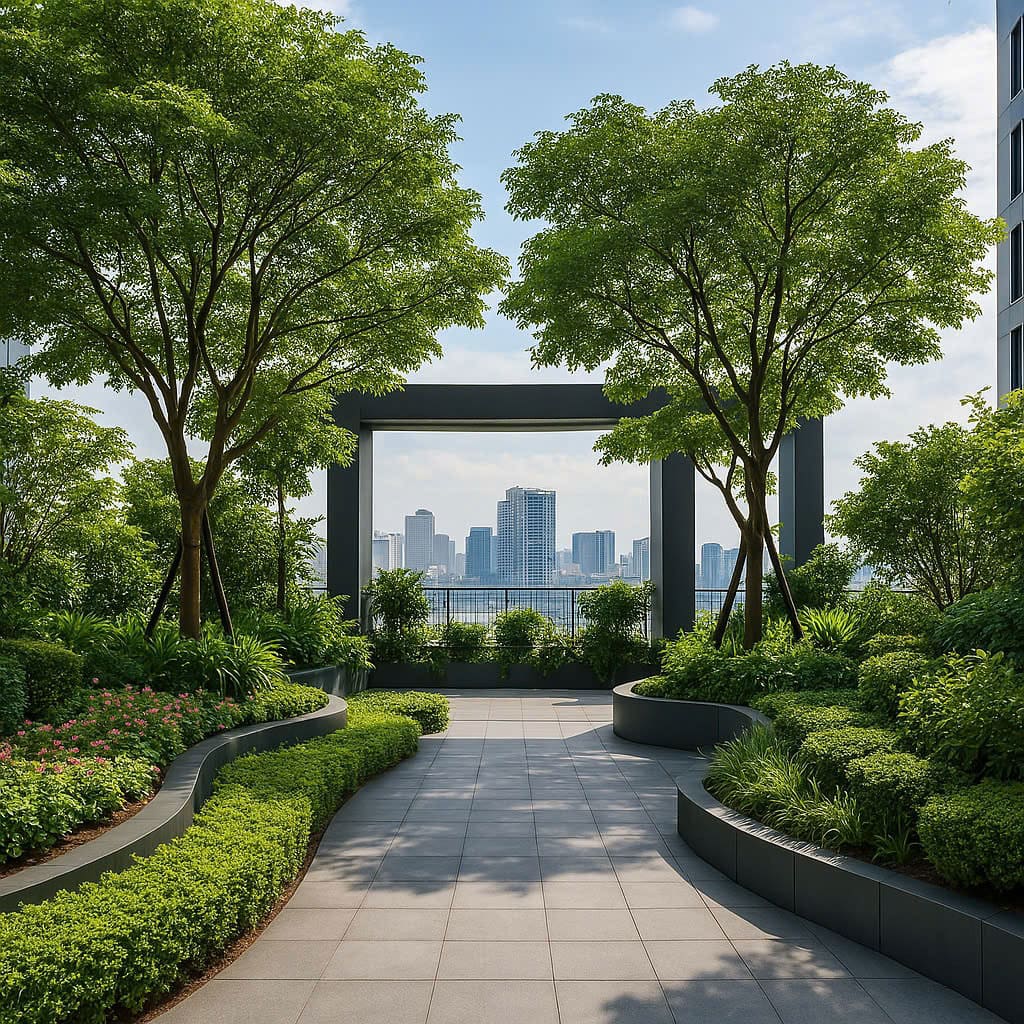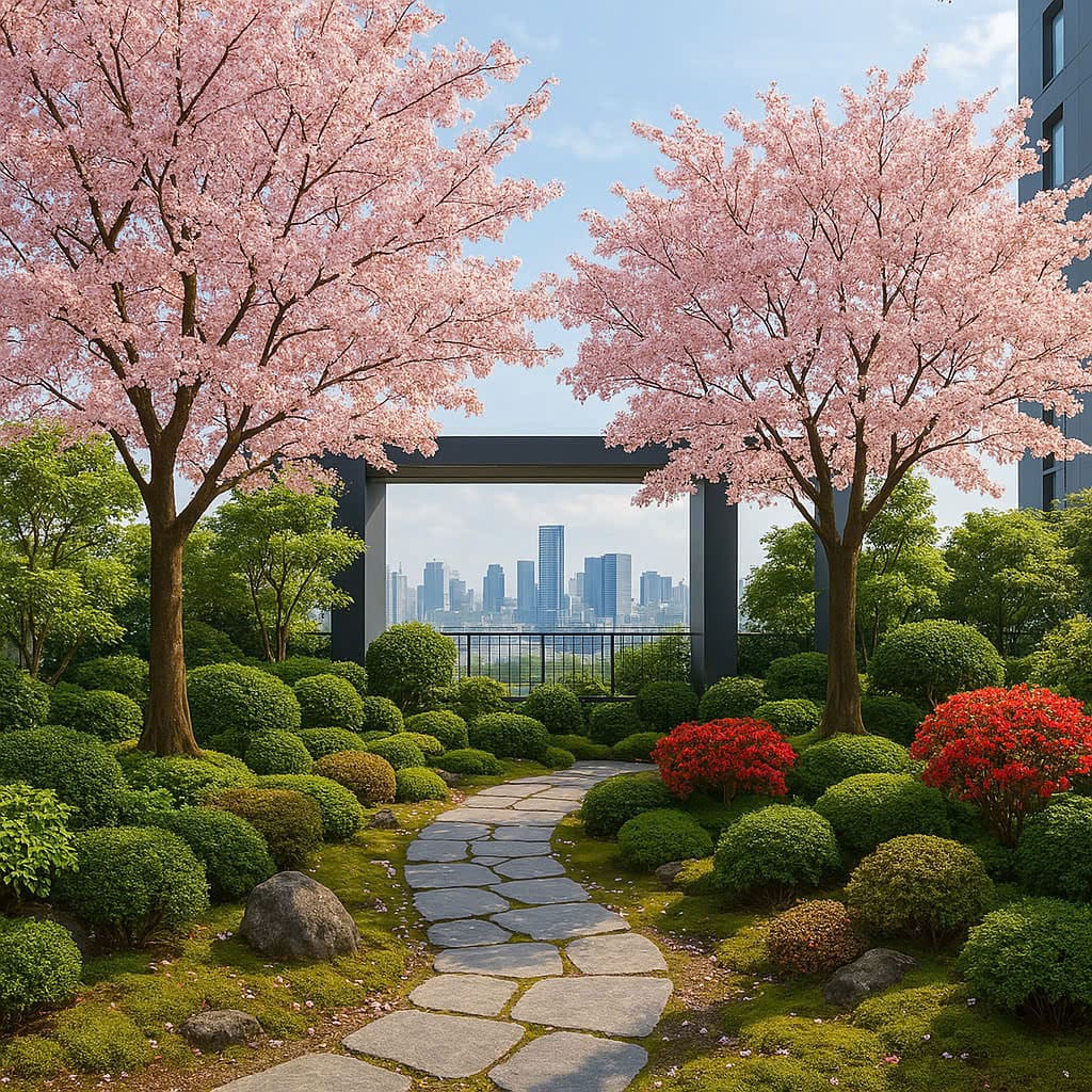 Phong cách Nhật Bản độc đáo: Happy One Sora tích hợp các yếu tố văn hóa Nhật Bản như khu vườn bốn mùa, vườn Nhật trên không, tạo nên không gian sống xanh mát và thư giãn.