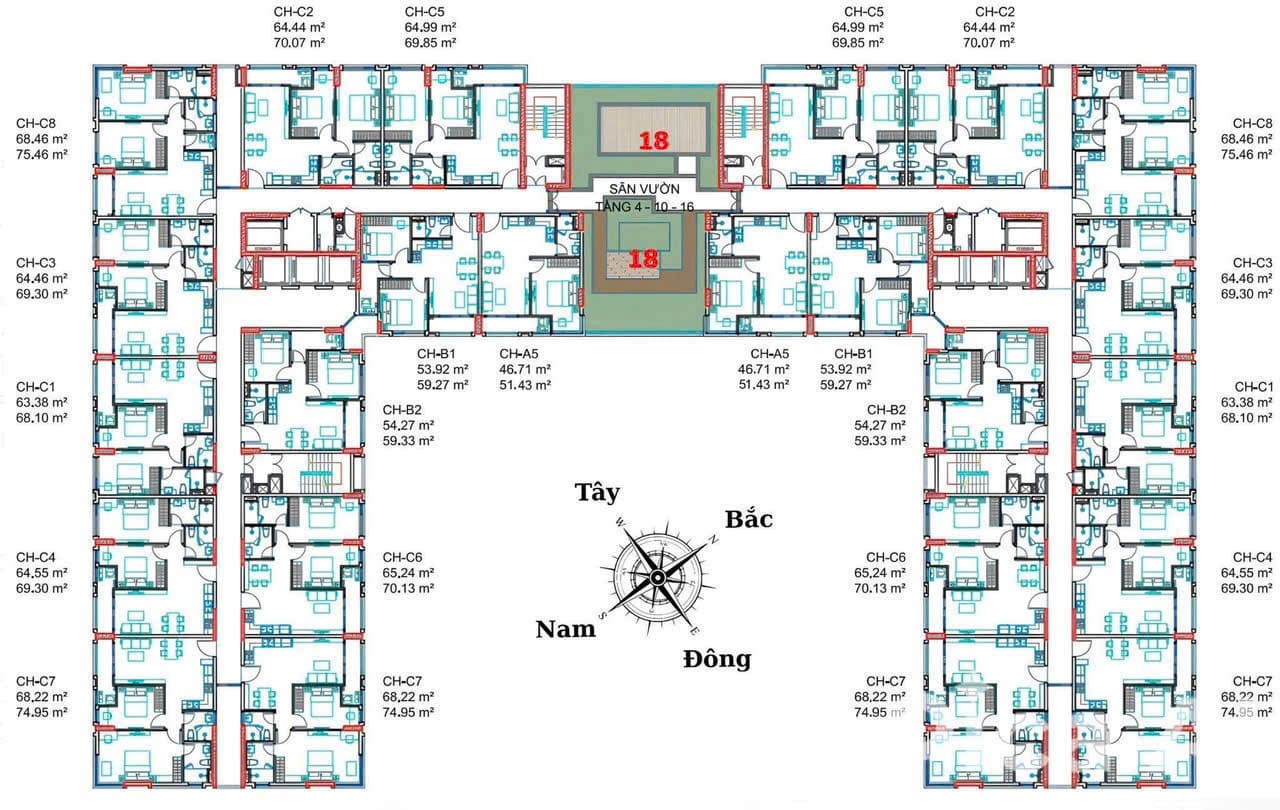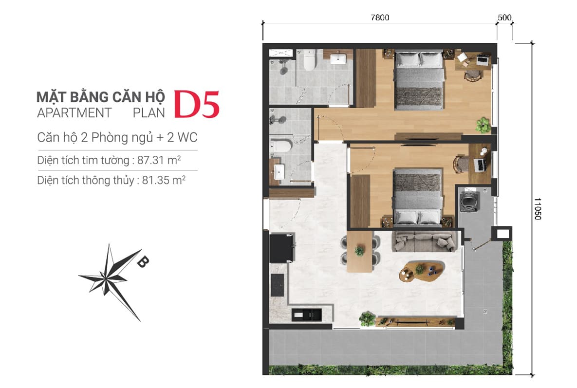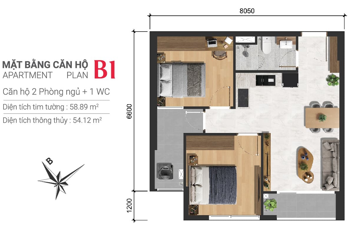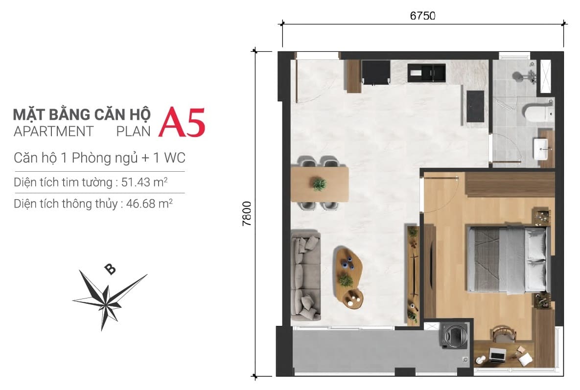 | Diện tích: | + 1PN: 46m2 – 49m2 – 51m2 (12%)