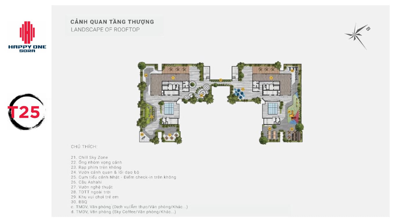 Mặt bằng tiện ích tầng thượng dự án Happy One Sora Thủ Đức